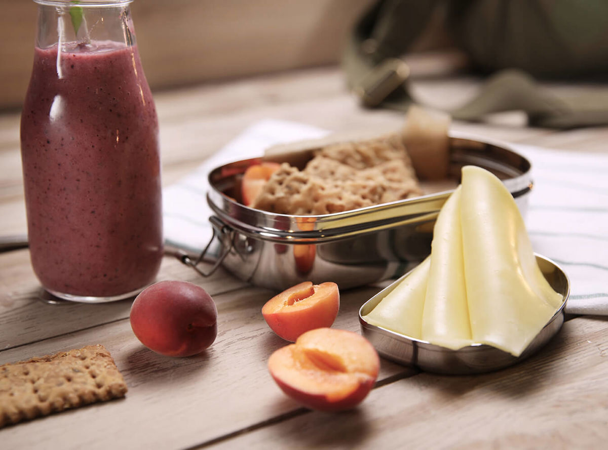 Skip the sugary snack bar when you need some energy during the day. With delicious and sweet apricots, wholegrain crackers, a berry smoothie and a slice of Arla Cheddar, you will be loaded up on naturally tasty energy when you are on-the-go.