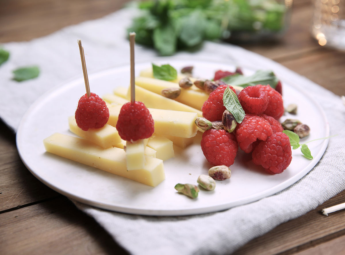 Enjoy a delicious and sweet dessert with naturally tasty Arla Havarti, pistachio nuts, fresh mint leaves and flavorsome raspberries!