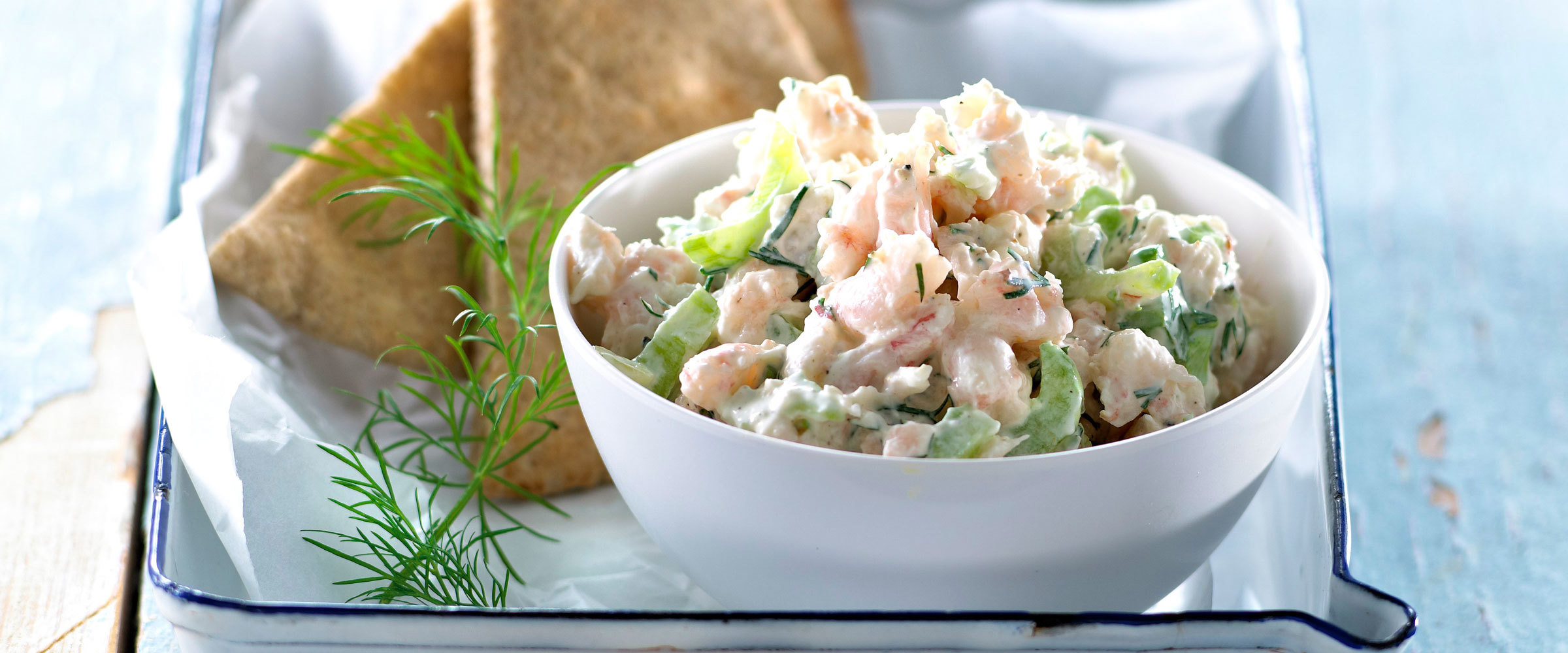 The shrimp salad can also be filled in the pita bread and used in a lunchbox.