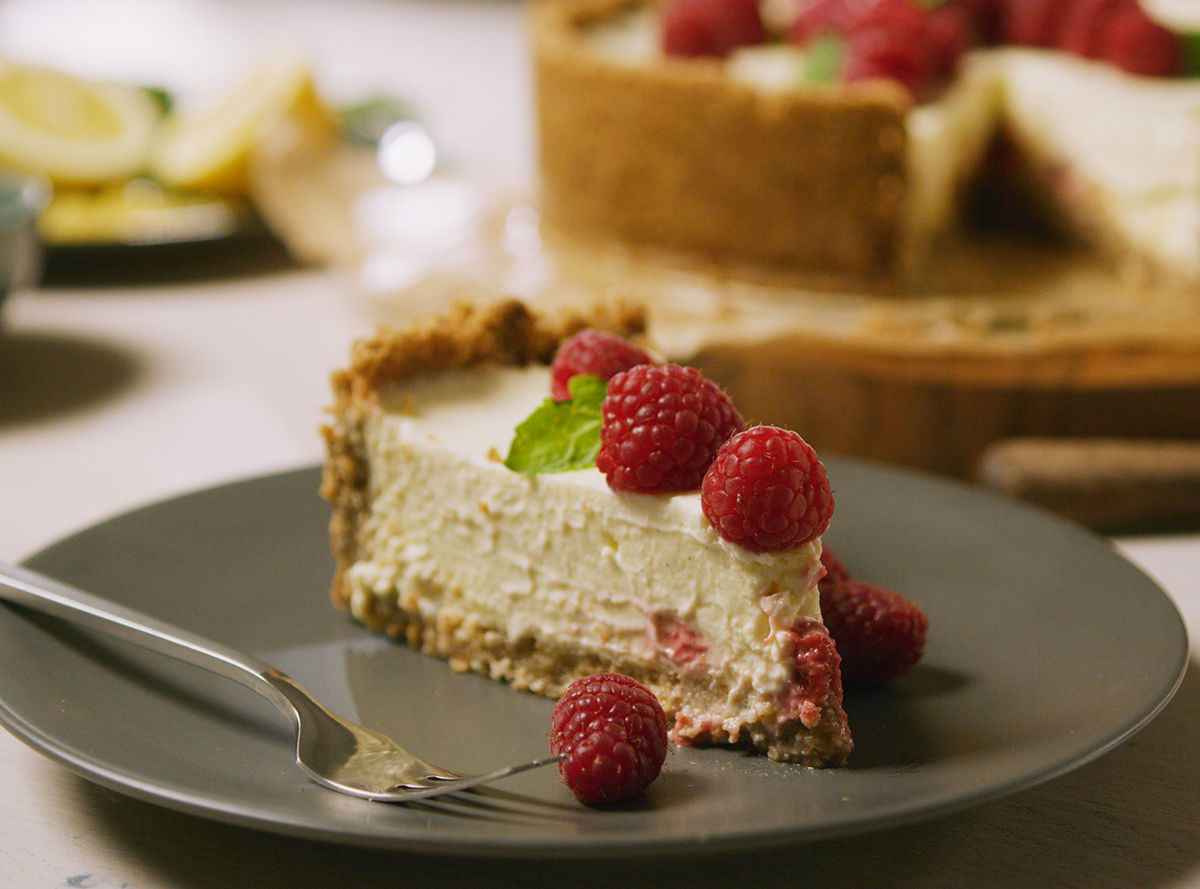 NEW YORK CHEESECAKE WITH LEMON, RASPBERRIES AND ARLA NATURAL CREAM CHEESE